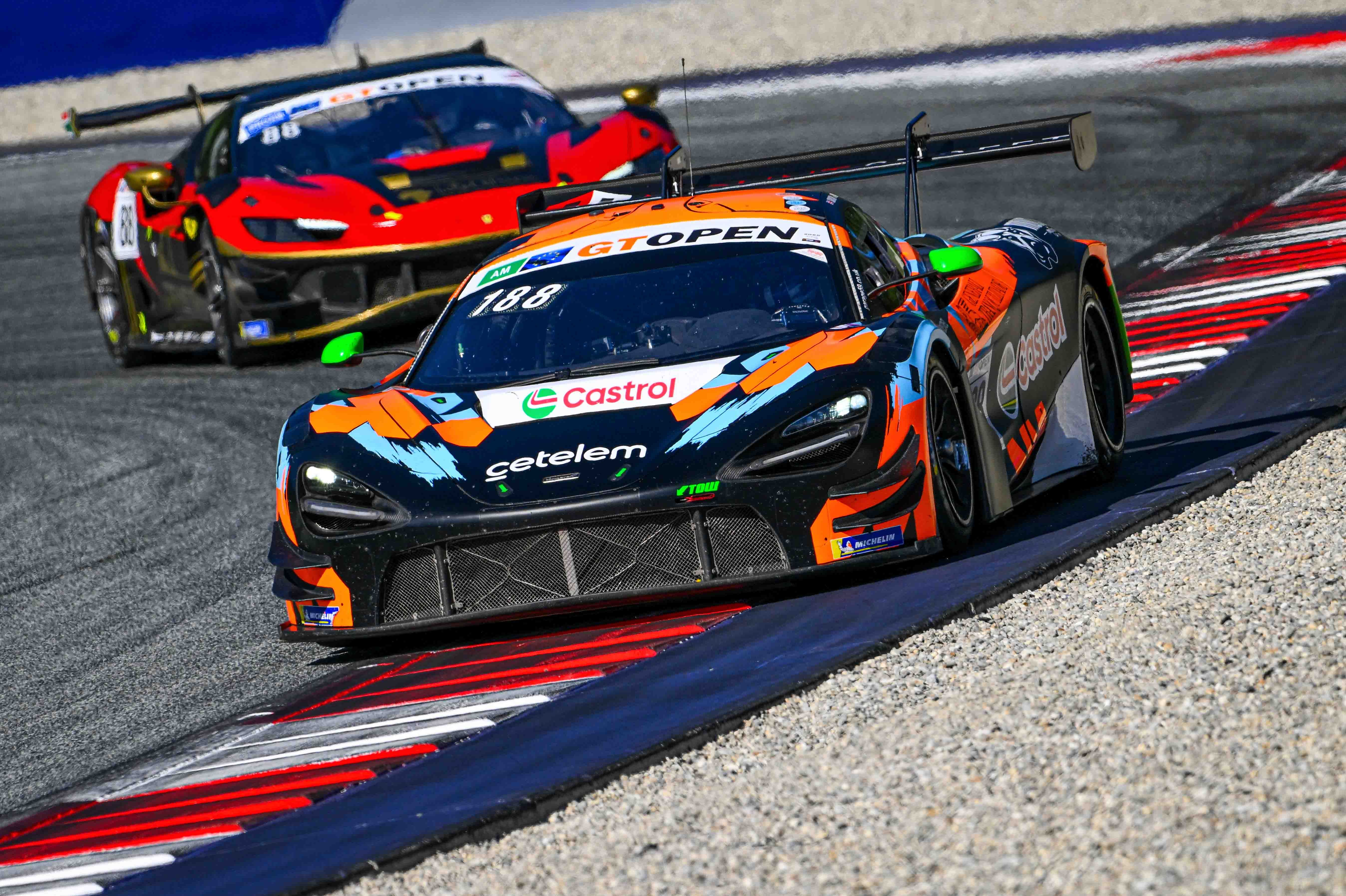 Carl Bennett and Tommaso Mosca took their second win of the season on a sunny Saturday afternoon at the Red Bull Ring. The Thai-Italian pair, in their AF Corse Ferrari 296, put a perfect performance to beat the GetSpeed Mercedes of Fabian Schiller and Anthony Bartone at the end of a very lively race, with Mosca winning the final duel with Bartone in the final lap, after a great performance by both drivers.